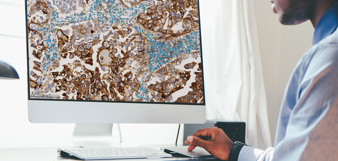 与其它分析模块(荧光和明场)结合使用,分析细胞之间的空间关系。在同一张切片上或已登录的序列切片上进行细胞群之间的最邻近、邻近度和浸润分析