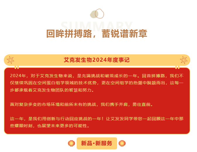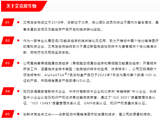 2024年12月,随着Nature Methods 将Spatial Proteomics (空间蛋白质组学) 评选为2024的年度方法,艾克发生物推出AlphaSignature™I/O-32及PreIND-22超多重检测方案,为继续推动空间蛋白质组学在生物医学发现和转化研究应用中做出更多贡献!