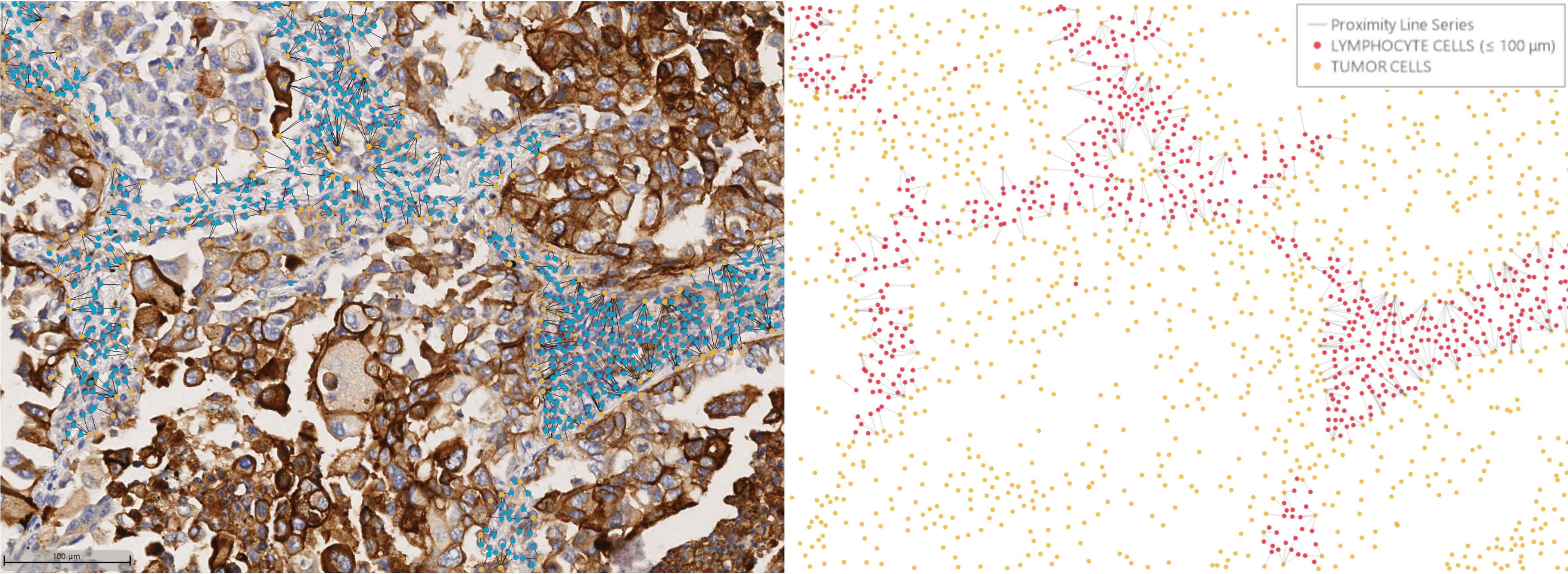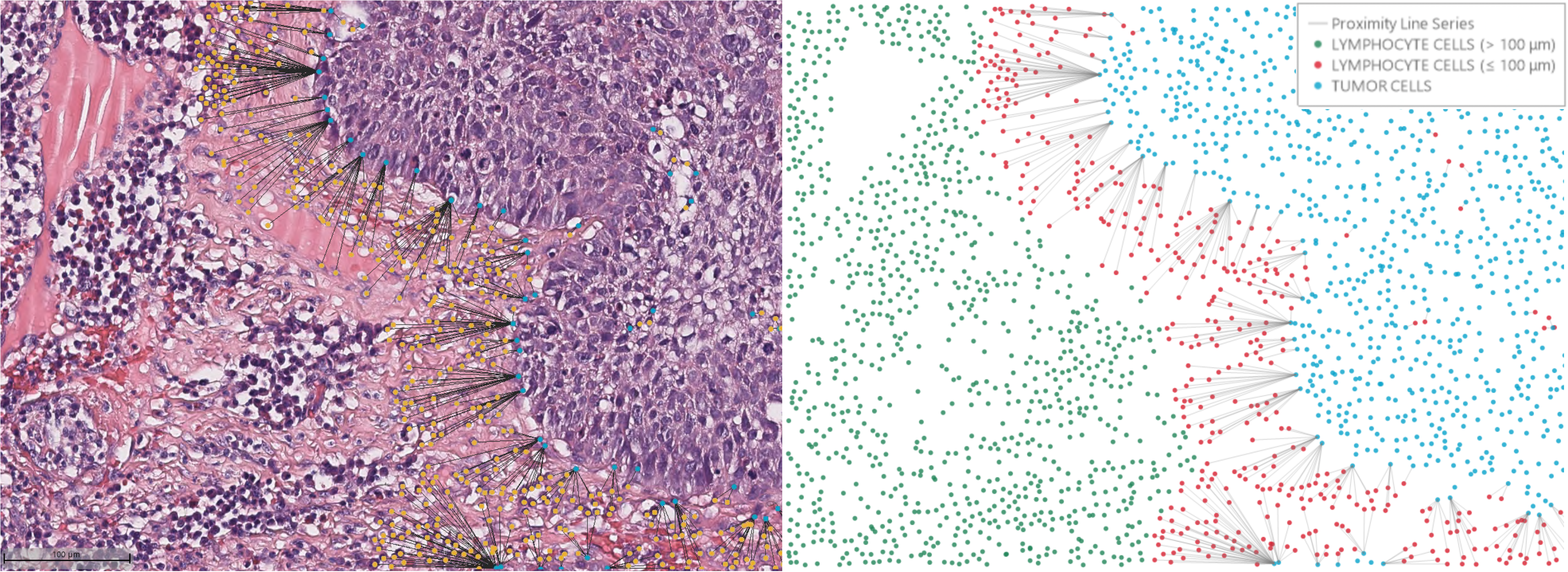 特定细胞形态识别,如肿瘤细胞和淋巴细胞,进行两类细胞的最近邻分析或邻近度分析