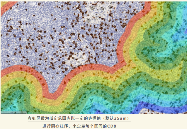 不同区域阳性细胞识别及定量(统计数量、密度、百分比)