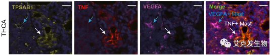 (文中Figure 2. 甲状腺癌中VEGFA+ Mast和TNF+ Mast)[7]