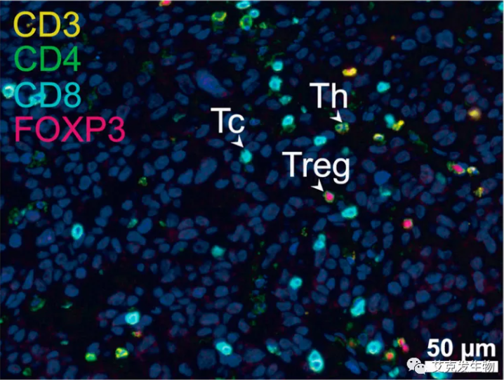 (文中Fig.1 多重免疫组化技术标记 Th-T helper; Tc-cytotoxic T cell; Treg-regulatory T cell)[1]