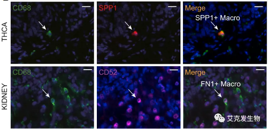 (文中Fig.6 THCA和肾脏代表图像:SPP1+巨噬细胞和FN1+巨噬细胞)[7]