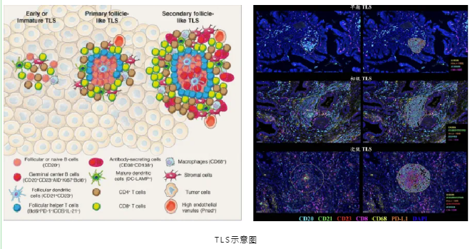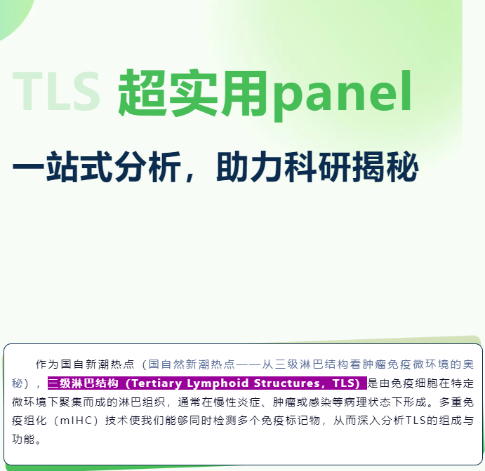 TLS 的mIHC分析为研究其在免疫反应中的角色提供了强有力的工具。通过对这些结构及其组成细胞的深入分析,可以更好地理解肿瘤微环境及其对免疫治疗的影响,为未来的临床应用提供重要的支持,希望艾发发同学的整理能够为老师们提供实用的信息和资源,让科研工作更加顺利!