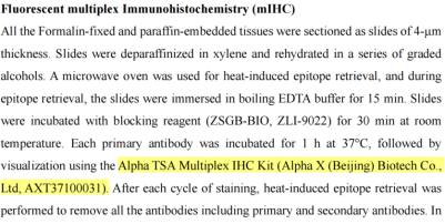 本文中涉及的mIHC实验(Panel:CD30、DHRS2、PAX5、DAPI)利用艾克发生物的AlphaXTSA®多靶点免疫组化染色试剂盒(CAT#AXT37100031)直观检测到了DHRS2+CD30-PAX5dim+细胞的存在。