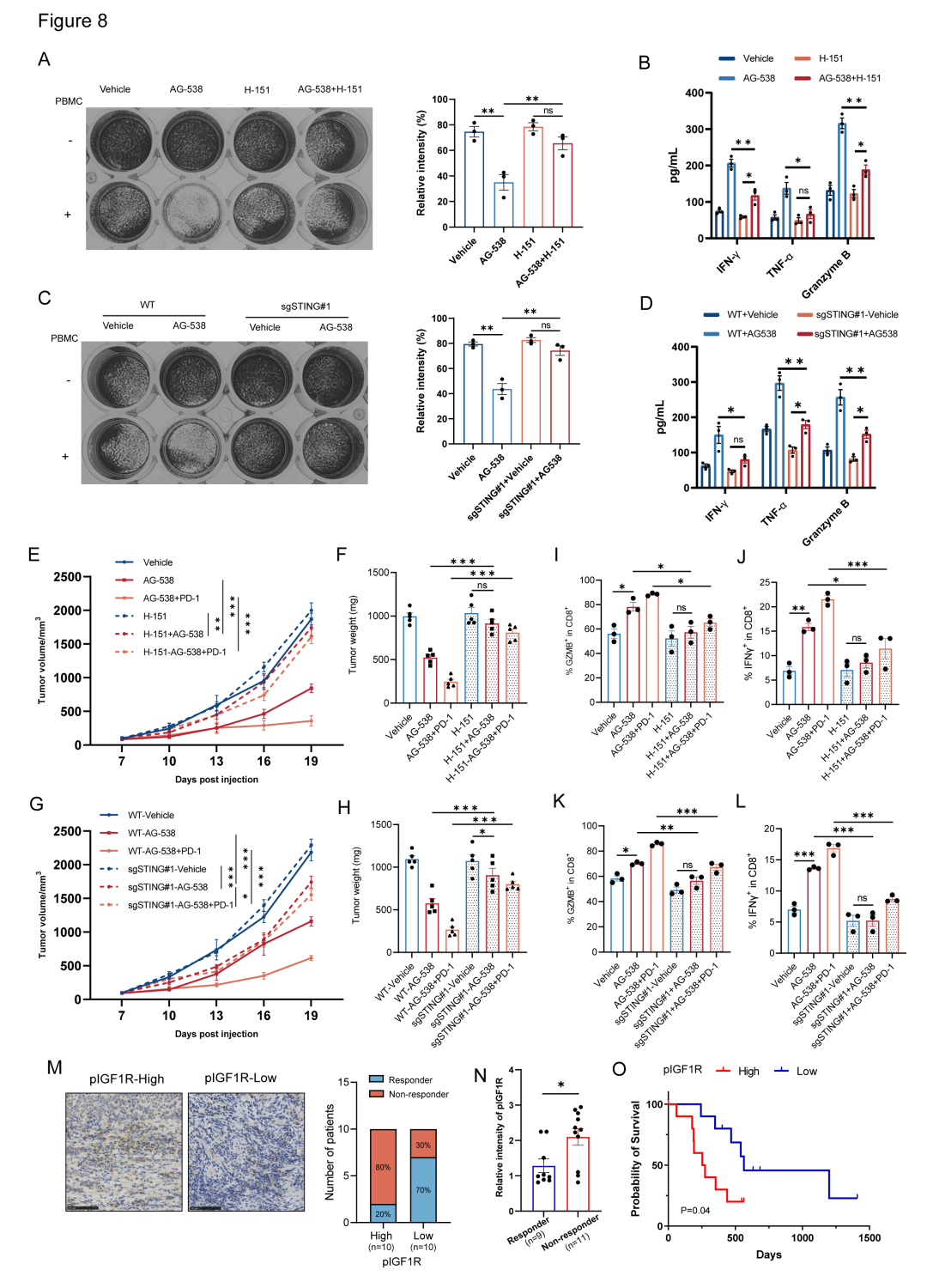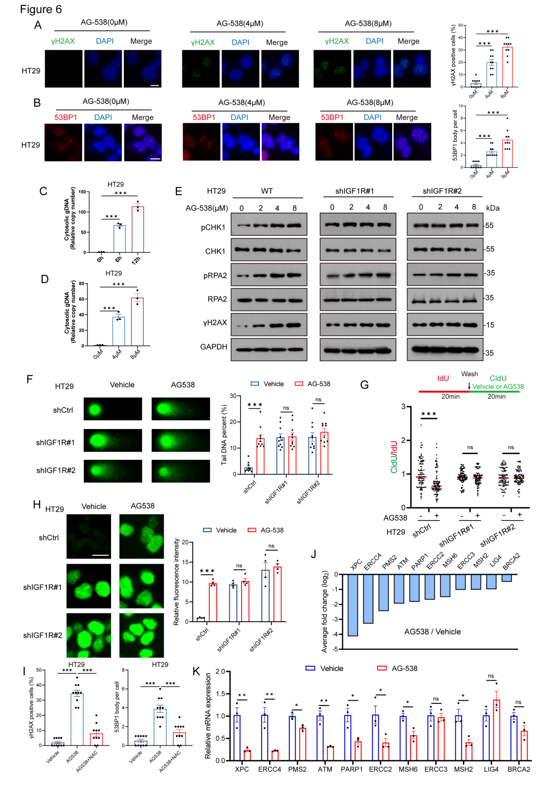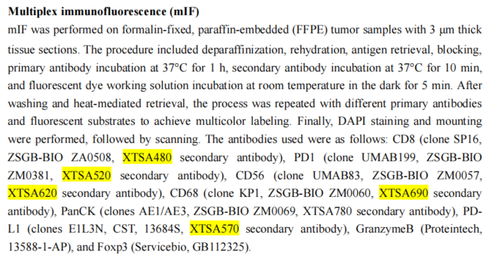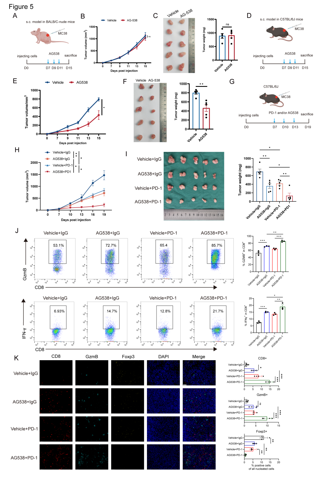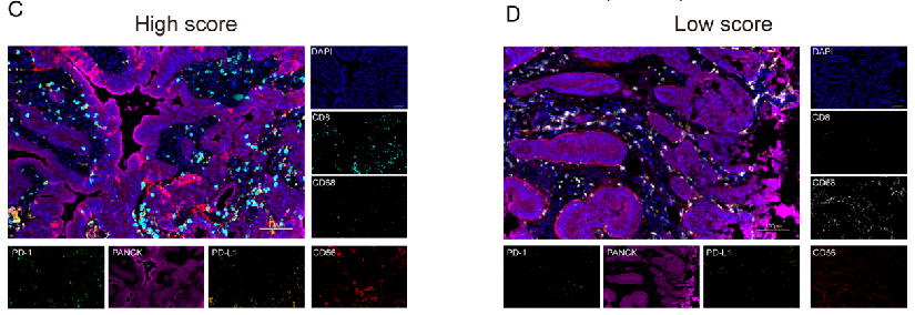结直肠癌(CRC)是全球癌症相关死亡的第二大原因。尽管早期发现和治疗取得了进展,但晚期CRC的预后仍然不佳,这强调了迫切需要新的治疗策略。近年来,免疫疗法,尤其是针对PD-1/PD-L1和CTLA-4的免疫检查点抑制剂,已成为一种有希望的CRC治疗方法。这些疗法在高微卫星不稳定性(MSI-H)或错配修复缺陷(dMMR)型患者亚群中显示出可观的临床益处。然而,大多数CRC患者以微卫星稳定性(MSS)为特征,对免疫治疗的反应有限,因此需要改进预测方法和新策略来提高免疫治疗在更广泛的CRC患者群体中的有效性。如何精准预测免疫治疗响应并开发增效策略,是当前研究的关键挑战。 类风湿 等 为了构建CRC患者的免疫亚型,研究团队收集了来自TCGA和GEO数据库的公共数据,包括临床信息和RNA-seq数据。通过单样本基因集富集分析(ssGSEA)和分层聚类,将CRC患者分为高、中、低免疫浸润亚型(Cluster 3/2/1)。其中高浸润亚型(Cluster 3)富集CD8+ T细胞、NK细胞和M1巨噬细胞,MSI-H比例高,提示免疫治疗敏感性;而中浸润亚型(Cluster 2)预后最佳,可能与免疫抑制性微环境动态平衡有关。 2.基于机器学习模型预测CRC患者免疫治疗敏感性 3.使用内部队列和临床标本验证预测模型 为了进一步验证该模型在实际应用中的性能,研究团队收集了45例患者的标本,同时进行转录组测序和类器官培养。根据13个关键基因的表达谱,这些患者被分为高评分组和低评分组。研究者采用多重免疫组化(mIHC)检测临床样本中CD8+T细胞、PD-1/PD-L1表达及Foxp3+Treg细胞分布,在高评分组中CD8+T和CD56+NK细胞显著增加,两者都与肿瘤杀伤有关;免疫检查点PD-1和PD-L1的高表达水平表明高评分组患者将从免疫治疗中获益更多。为了评估CRC患者对PD-1抗体的反应性,研究团队又构建了具有天然肿瘤浸润性免疫细胞的患者来源的类器官(PDOs),并用Nivolumab治疗。Ki67免疫荧光染色结果显示,抗PD-1治疗后,高评分类器官的增殖能力明显受损,有效抑制了肿瘤的生长。因此,来自临床样本的验证结果证实了该模型的高准确性和可靠性。 4.基于免疫亚型的药物筛选确定I-OMe-AG-538是增强抗肿瘤免疫的潜在药物 免疫亚型分析显示了区分个体对免疫治疗敏感性的强大能力。为了进一步将免疫治疗的益处扩展到更多的CRC患者,基于高(Cluster 3)和低(Cluster 1)免疫浸润组之间前100个最显著的上调和下调基因来识别可能增强抗肿瘤免疫的潜在药物。PBMCs和肿瘤细胞的体外共培养实验显示,与其他药物相比,AG-538增强PBMCs介导的肿瘤细胞杀伤效果最为显著。进一步研究表明,AG-538通过调节趋化因子表达激活抗肿瘤免疫应答,显著提高CCL5和CXCL10水平。随后的实验结果表明,AG-538增强了两种细胞对抗PD-1治疗的敏感性,并有效促进了细胞活化相关细胞因子lFN-γ、GzmB和TNF-α的分泌,但AG-538的作用依赖于抑制IGF1R。此外,体外实验结果表明AG-538预处理的CRC细胞仍然表现出更大的肿瘤易感性,而AG-538预处理的PBMC对CRC细胞并没有产生更强的细胞毒性作用,这表明AG-538主要通过对肿瘤细胞的作用间接激活抗肿瘤免疫,而不是直接作用于免疫细胞。 5.I-OMe-AG-538增强体内的抗肿瘤免疫反应 6.AG-538诱导活性氧(ROS)依赖的DNA损伤,下调多修复基因的表达 受损的DNA是诱导抗肿瘤免疫的重要因素。为了探究AG-538作为IGF1R抑制是否与DNA损伤有关,研究团队检测了AG-538处理后的DNA损伤生物标志物γH2AX和53BP1。结果表明,AG-538显著增强细胞DNA损伤水平。此外,敲除IGF1R也增加了DNA损伤的程度,但AG-538未能进一步加剧IGF1R敲除细胞的DNA损伤。qPCR结果等多种分子实验和蛋白实验结果表明,AG-538不仅通过产生ROS诱导DNA损伤,而且通过抑制多修复基因的表达加重DNA损伤。 为了进一步评价AG-538的抗肿瘤免疫作用是否依赖于cGAS/STING通路,研究团队进行了体内和体外实验。PBMC共培养实验及MC38小鼠肿瘤模型敲除实验均证实STlNG低表达及不表达都明显损害了AG-538的治疗效果,表明AG-538诱导的抗肿瘤免疫依赖于肿瘤固有的cGAS-STING激活;流式细胞术和IHC结果均显示在STING抑制或敲除的小鼠MC38同种异体移植物中,AG-538未能诱导lFN-γ+CD8+T细胞、GzmB+CD8+T细胞的浸润增加。这些结果共同表明AG-538激活了TME的内在免疫反应,促进了免疫细胞的浸润和活化,为CRC患者免疫治疗的有效性提高提供了新的理论依据。 为进一步探讨IGF1R通路在CRC免疫治疗中的临床意义,研究团队对20例接受免疫治疗的CRC患者的标本及其临床特征信息进行分析。发现在plGF1R低表达组中应答者的百分比更高,并且应答者的plGF1R低于无应答者,且plGF1R低表达组预后明显优于高表达的患者。为了进一步探索上述免疫评分与IGF1R通路激活之间的关系,将内部标本分为高评分组和低评分组,lHC结果显示高评分组plGF1R的表达较低。对AG-538处理的CRC细胞检测13个关键基因的表达,在Z-score归一化后,计算免疫评分,发现AG-538治疗后这些评分显著升高。这些发现不仅强调了预测模型的稳健性,而且证实了AG-538抑制plGF1R在引发抗肿瘤免疫应答中的有效性。 本研究中涉及的mIHC实验(Panel:CD8、CD68、CD56、PD-1、PD-L1、PANCK、DAPI)利用艾克发生物的XTSA®染料及相关试剂直观检测到高/低免疫评分患者的细胞亚群分布情况,凸显了mIHC在TME分析中的独特优势。 本研究通过整合多组学数据与机器学习算法,构建了基于免疫亚型的预测模型,为CRC患者分层治疗提供了新工具;筛选出的新型IGF1R抑制剂AG-538,可显著增