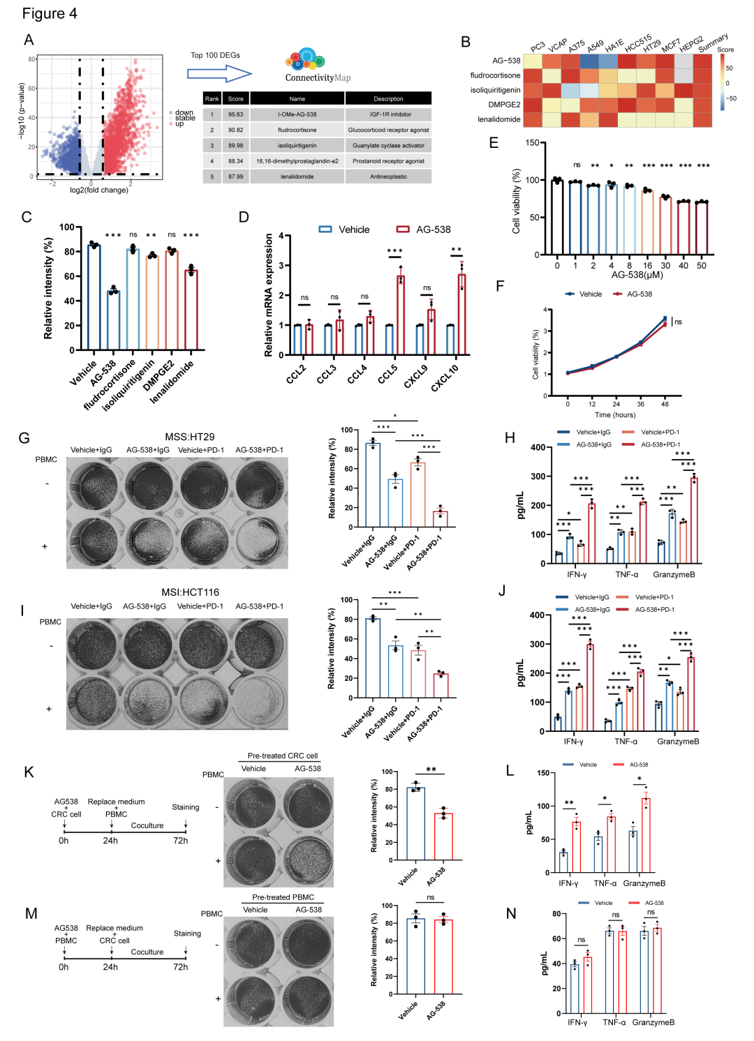 图4.基于免疫亚型的药物筛选确定I-OMe-AG-538是增强抗肿瘤免疫的潜在药物(源自论文[1])