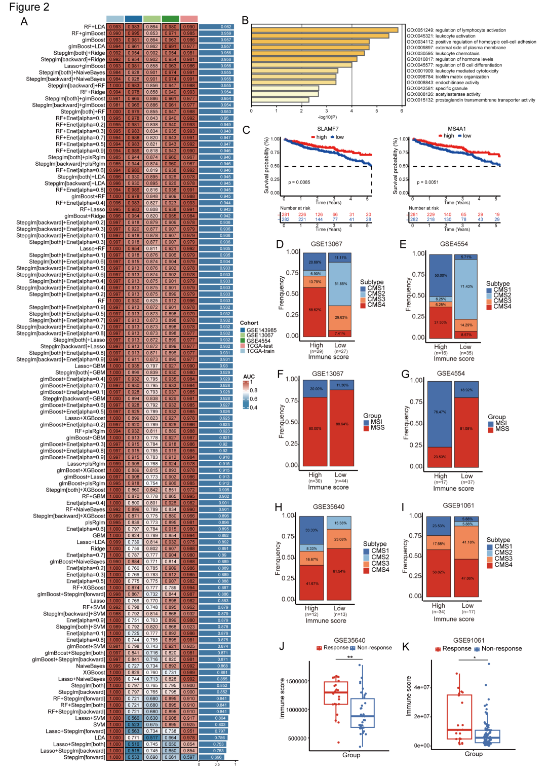图2. 基于机器学习模型预测CRC患者免疫治疗敏感性(源自论文[1])
